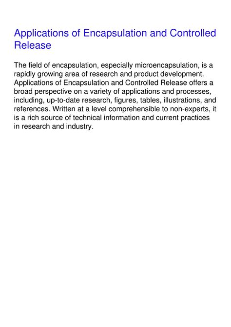 Read Applications of Encapsulation and Controlled Release mobipocket